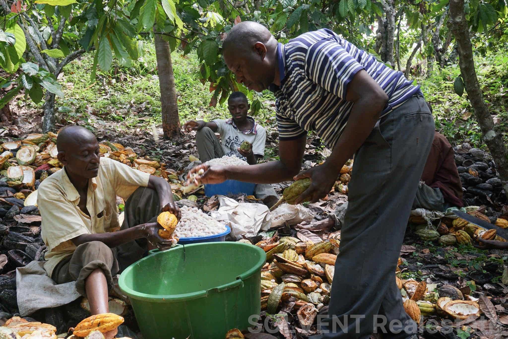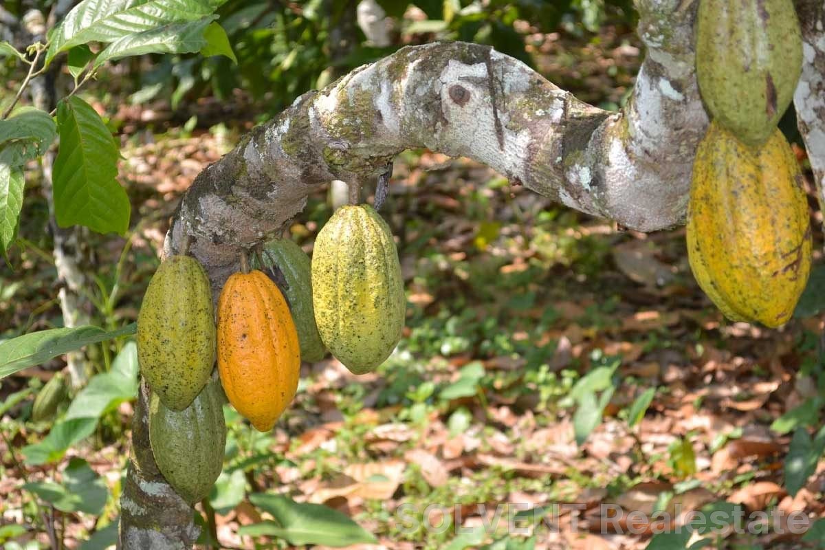 Land suitable for cocoa growing should have well-drained, fertile, loamy soil rich in organic matter. A warm, humid climate with regular rainfall and partial shade is ideal. Gentle slopes prevent waterlogging, while access to water and good transport supports farm management and harvest marketing